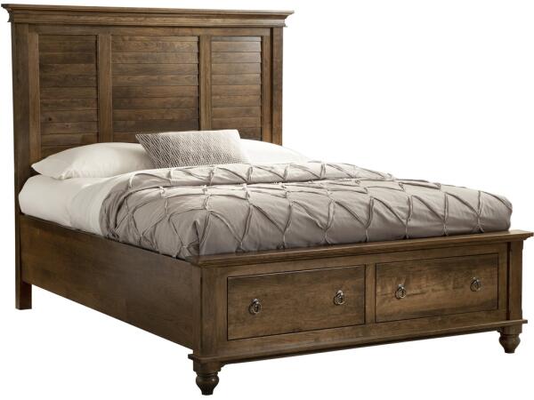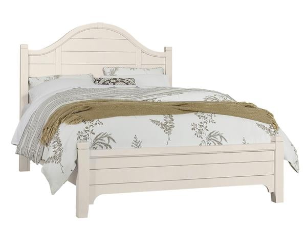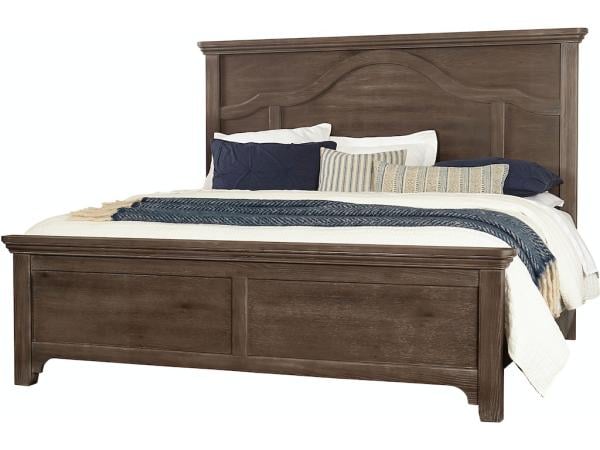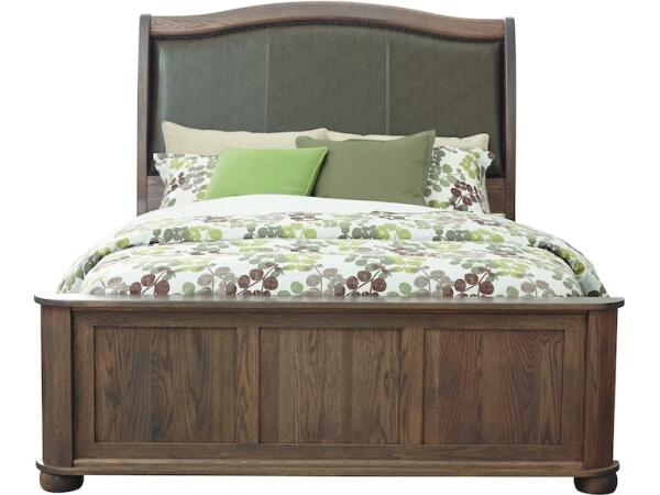 Arched headboard featuring horizontal planks and solid wood posts. Also available with a storage footboard. Made in the USA For every tree used in the making of furniture at Vaughan Bassett, they donate a tree to be planted by the Virginia Department of Forestry Made of North American hardwood solids and hand selected oak veneers