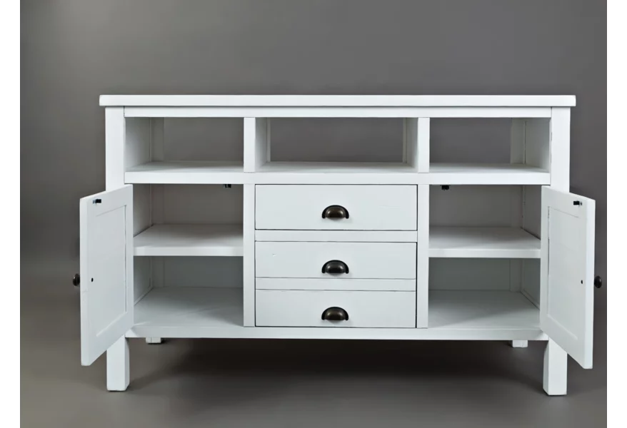 This collection has been carefully hewn to showcase the rich character of its solid hardwood construction. Each piece features entirely unique distressing and personality, bringing vibrant accent pieces to any room in the home. Width (side to side): 50″ W Depth (front to back): 19″ D Height (bottom to top): 30″ H