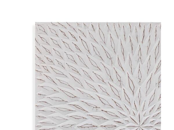 Dimensions: 38x38H Finish: White Wash Geometric wall panel features a white wash finish.