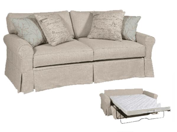 The design of the Alexander with Roll Arm queen sleeper sofa is pure classic: sock-styled arms, loose cushions, tapered walnut legs, and welted cushion seams. The look, however, is all yours: Choose from hundreds of fabrics, finding the color and texture perfect for your room. We invite you into our stores to discover even additional customization options for your sofa. The sofa will keep up with your family for years to come, supported by an interlocking hardwood frame.